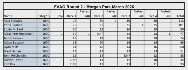 Round 2 of the 2026 FVAQ Championship at Morgan Park delivered tight racing, mixed fortunes, and a shake-up in the title fight.
